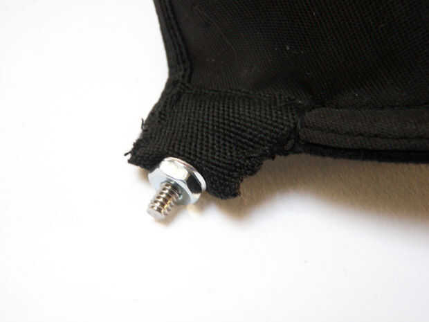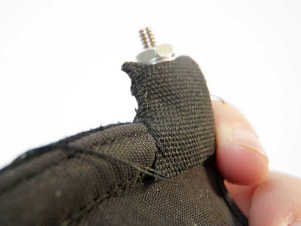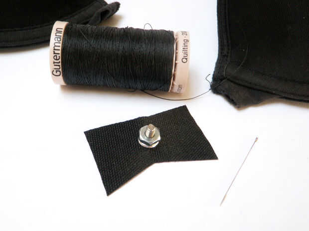 Doble el lazo sobre la sección de tela en la parte frontal del sujetador que sostenga un lado de la hebilla. Coser a la tela hasta el sujetador sobre el tejido existente. Doble-respaldé la puntada para la fuerza adicional.