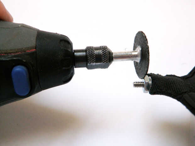 Asegúrese que la tuerca y el perno se sujetan firmemente. Con una sierra para metales o herramienta rotativa, corte el perno al ras de la tuerca.