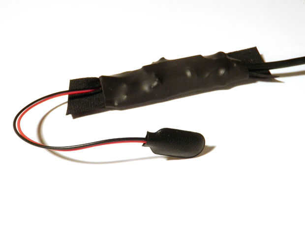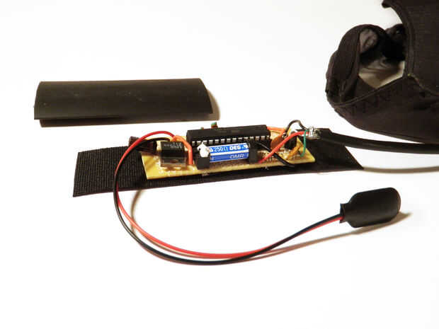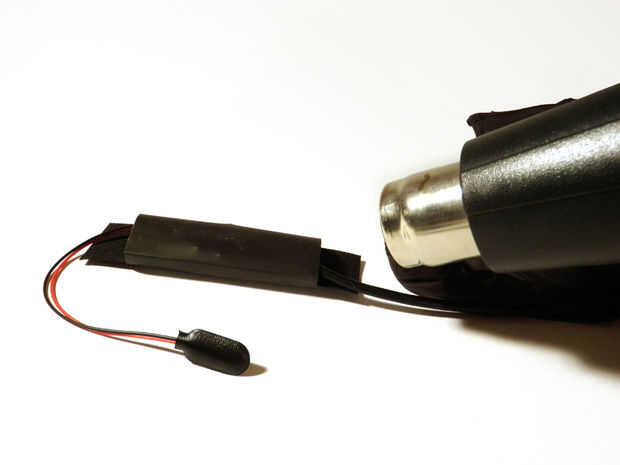 Colocar una tira de tela debajo de la placa de circuito largo tal que sobresalga 1" más allá de la Junta en cada extremo. Tubería del encogimiento del diapositiva 1" diámetro sobre la tela y el tablero de circuito. Rápidamente calentar a la contracción de la tubería con una pistola de calor apenas tiempo suficiente para al apretar alrededor de la Junta.