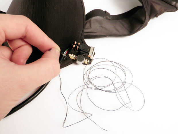 el Bra Musical reproduce música cuando se toca!Herramientas necesarias:-Conductor (strechable tela)-Fusible de interconexión (individual y doble cara - tu tienda de tejido local)-pequeño niquelado coser broches de presión-hilo conductor-espuma o fiel