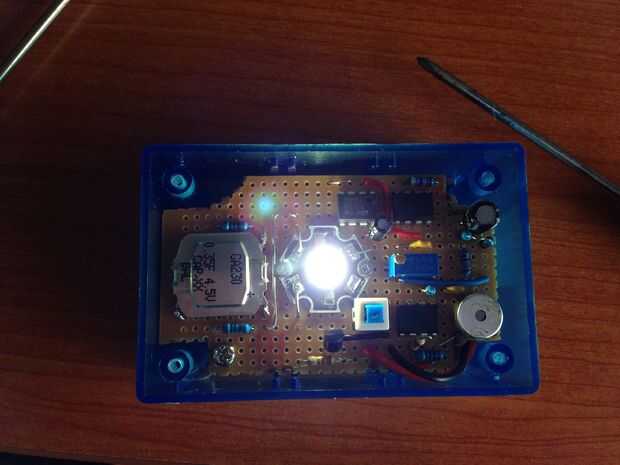 Poniendo el circuito y la batería en la caja, encender y es el momento de sintonizar el circuito. Si su circuito nunca se apague el LED el comparador es demasiado sensible. Gire la maceta hasta que veas que el LED se apagará. Cuenta que hay un retraso de 10 segundos que hemos introducido en el circuito. Será sabio que ser bastante y esperar antes de realizar la conclusión. Si el LED no se enciende, gire sólo el bote al revés hasta que lo haga en un nivel de sonido que usted está cómodo con.