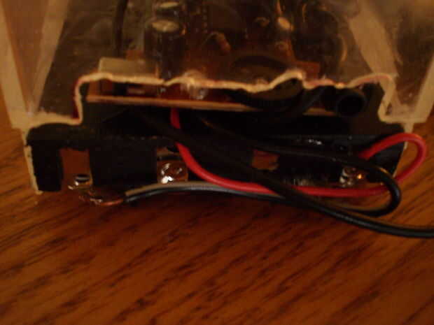 que tenía que hacer un montón de trabajo sobre el caso para todas las cosas que quería que primer corte sobre una pieza de media pulgada de un lado para que la caja de baterías podría sobresalir un poco, luego archivé abajo los interiores para que sea lo suficientemente grande para las baterías a, también perforé los agujeros en la parte superior para permitir que el sonido escape