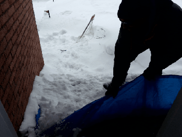 ADVERTENCIA: La lona o plástico de la hoja es extremadamente muy resbaladizo cuando está cubierto de nieve. Asegúrese de que cualquier peatón potencial no tiene un gran derrame en su propiedad! ***