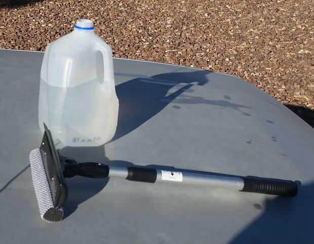 Escobilla de goma (de mango largo es mejor - disponible de tiendas de piezas automotrices o departamentos - o incluso herramientas de carga del puerto)