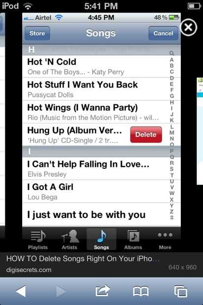 Ir a través de la lista de canciones de su ipod. ¿Hay canciones que no escucha ya? Si es así, borrarlos. Esto sólo les llevará apagado el ipod. No itunes. Para ello, deslizar izquierda cerca del final del título de la canción.