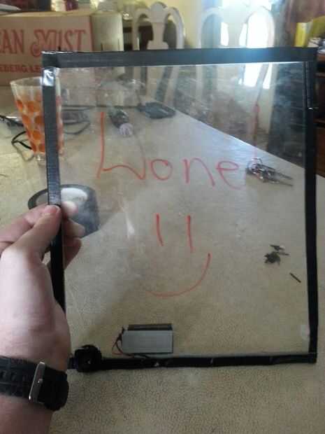 Casi! Ahora todo lo que necesitas hacer es tomar el ducktape y dividirlo por la mitad y cubrir los cables. Si han hecho los cables muy cerca de la longitud de la tabla será muy simple pero si tienes una cantidad extra de cable vas a tener que ser un poco creativo con ponerlo todo en el borde! Finalmente Ducktape la batería a la parte de atrás o el tablero y listo :) el tiempo de construcción será que cualquiera eran de media hora a una hora :)