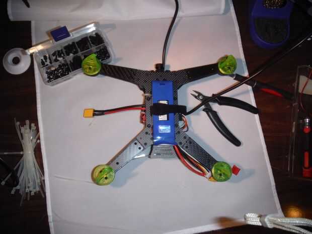 Antes de montar todo a la placa inferior me tomé este tiempo para enhebrar una tira de velcro por las ranuras de la la placa inferior para asegurar la batería.