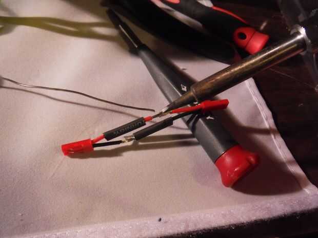 El alambre debe pop gratis cuando la conexión es suficientemente derretida y deja un final estañado listo para instalar - Lo mismo para el otro cable (positivo y negativo)
