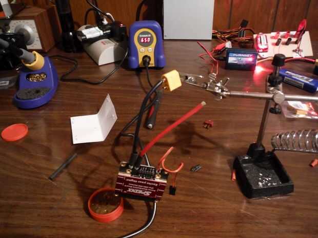 ¿Tienes listo de ESC para ir? Buena. Utilizar conectores XT60 para todas mis cosas RC básicamente porque odio absolutamente conectores Deans T de soldadura. El conector T puede ser mejor para cargas corriente más altas pero pensamos un sorteo de potencia máxima de 50A muy por debajo de la tasa de 60A para el conector XT60.