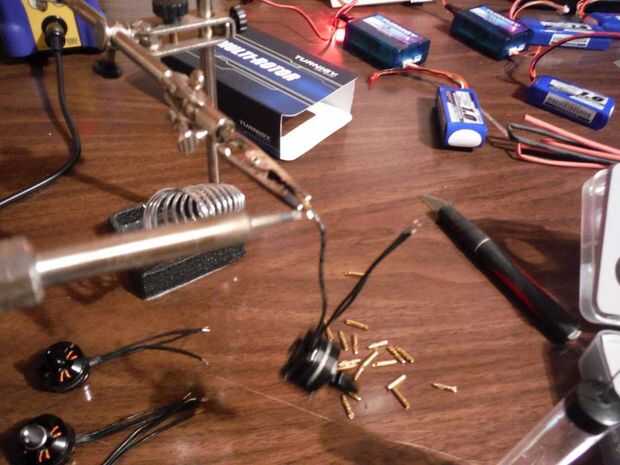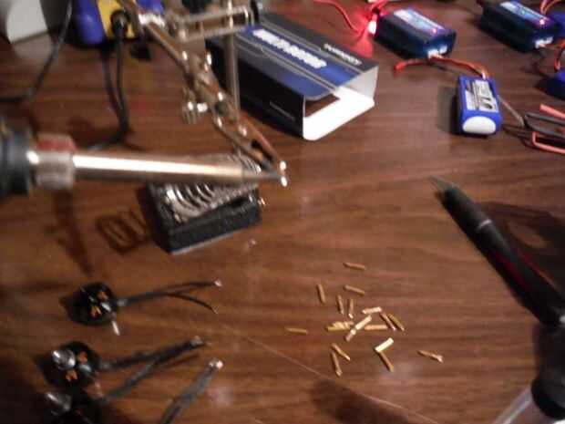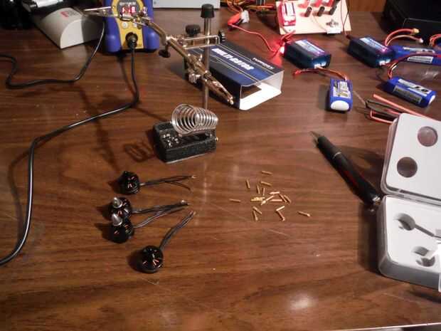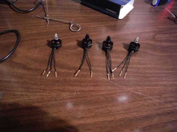 Gran ahora debe haber soldado hasta 12 balas masculinos en 4 motores y XT60 conector para la batería embala en la lista de piezas. Si usted escogió otros ESC será un profesional en soldadura conectores de bala. como habría 20 conexiones adicionales...