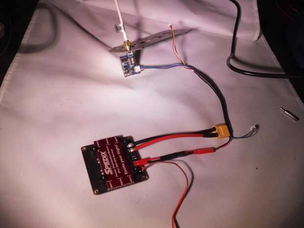 Para hacer el adaptador para la corriente video. Utilice 2 conectores JST macho y corte los cables rojo y negro para soldarlos de nuevo juntos. El arnés de cableado de vídeo se monta en la fábrica con un conector JST hembra y que no se deslizará sobre los pernos en el tablero de distribución de energía. Si usas la marca sugerida 3 celdas baterías seguro que está en el grifo de la pila y no la toma de 12v. está regulada 12V para 4 pilas y puede perder el video cuando el voltaje cae por debajo de 12v en un paquete de 3 celdas.