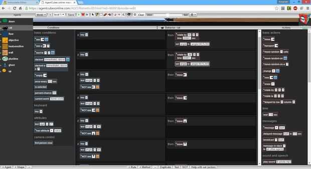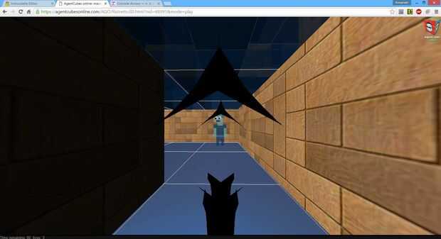 Muchos niños quieren usar vista en primera persona. El truco es hacer un seguimiento de la dirección que el agente se enfrenta con una ángulo variable, entonces girar la vista para que coincida con y comprobar el ángulo de comprobar las teclas de movimiento. Pongo el codigo para esto en el tablero para que todos puedan utilizar. El código está diseñado para un agente que por defecto las caras izquierda, como el gato que viene con AgentCubes. (Para otras direcciones, deberás cambiar los ángulos en las líneas ángulo de prueba .