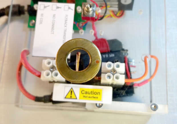 2. suelta los dos tornillos como un círculo en la imagen de arriba para cambiar los electrodos. Yo uso un cable 12AWG como electrodos.
