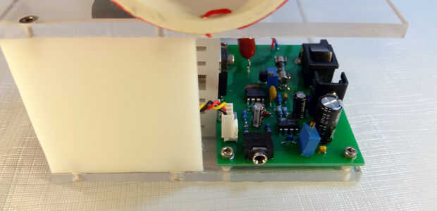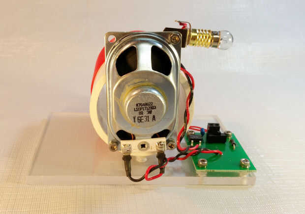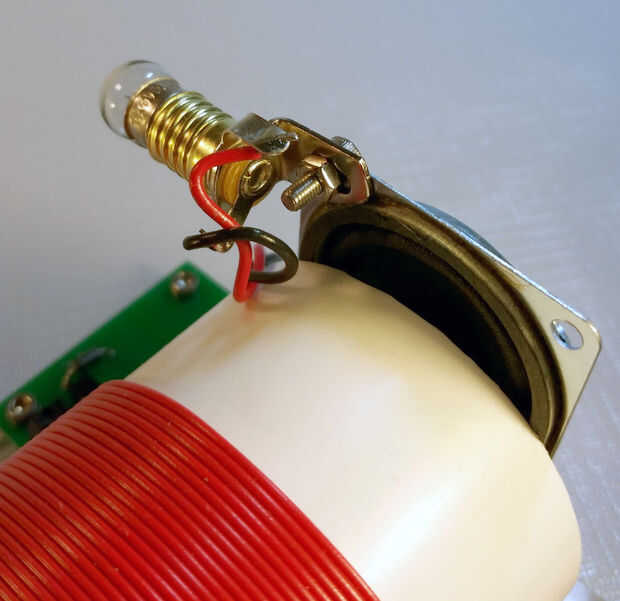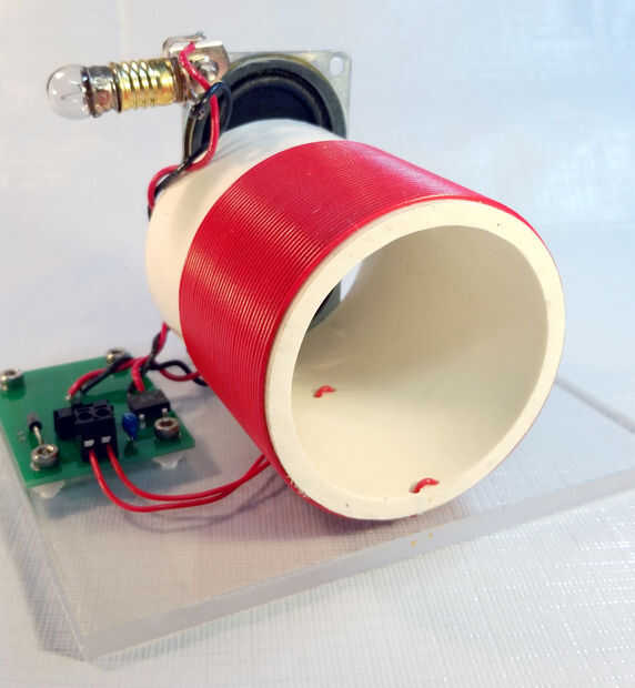 Montar la bobina, bombilla, altavoces y la placa de circuito en otro tablero plastica de recepción de RF.