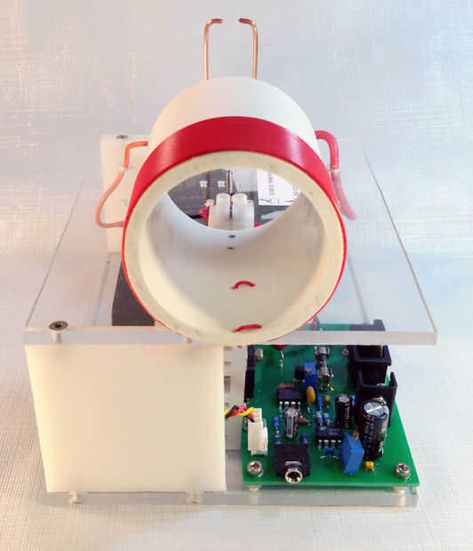 5. para transmisión de audio, gire el interruptor a la derecha en la placa de la bobina de recepción de RF. Enchufe el cable de entrada de audio 3,5 mm salida audio radio o reproductor de CD y podrás escuchar el sonido del altavoz.