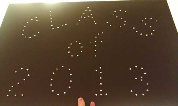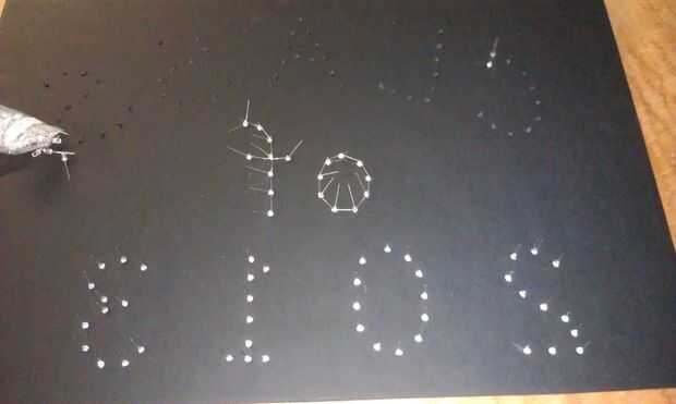 primero imprimir las letras para tu banner utilizando papel normal y recorto. Colocar las letras en la base de la espuma y con su Cautín, perforadora un agujero a través del papel en el núcleo de espuma cada trimestre pulgadas después de cada agujero porque los LED son cerca de 1 pulgada de largo y cada uno tiene que conectarse. Luego inserte cada LED en cada orificio de la base de la espuma y tirar el papel.