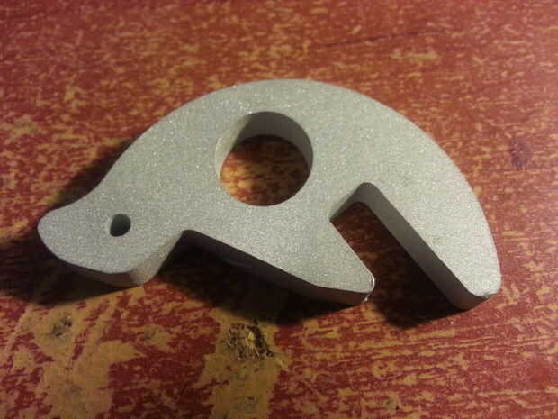 El archivo fue creado por Techshop en Autocad y luego el código de G que dice el molino computarizado que hacer se hizo en Vetric. Después del mecanizado, un estudiante que ya había tomado la clase de chorro de arena acabado las piezas.