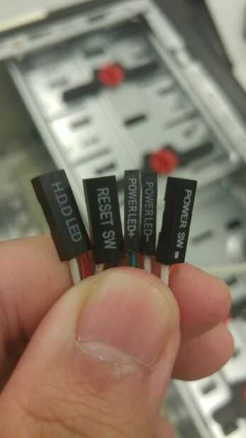 7. Alinee el conector de alimentación del panel frontal con la sección PWR de los encabezados del panel frontal de la placa base y conecte completamente.