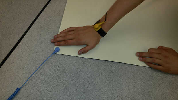 • Use una muñequera contra ESD y utilice un tapete antiestático.