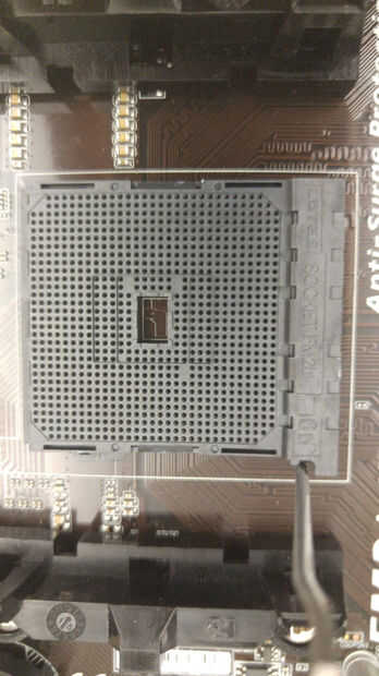 1. (cuadro 1) Localizar el zócalo de la CPU en la placa base. Encontrar el lado bar/palanca y levantar hacia atrás cuanto puedas, sin forzar.