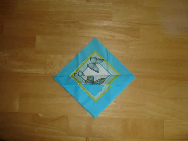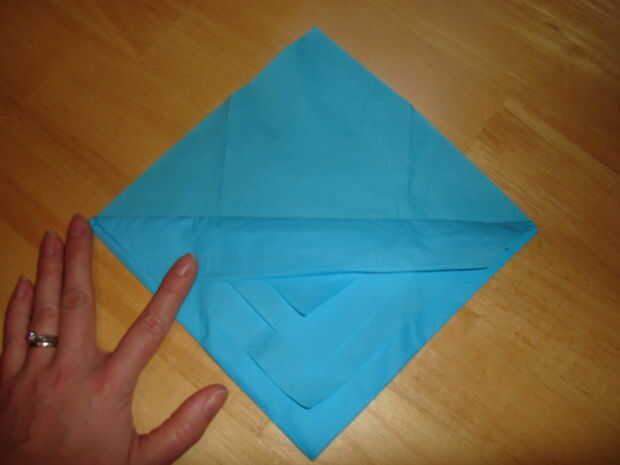 Doblar la la aleta hacia abajo en la esquina.  Lo mismo para la servilleta sin una servilleta de acento.