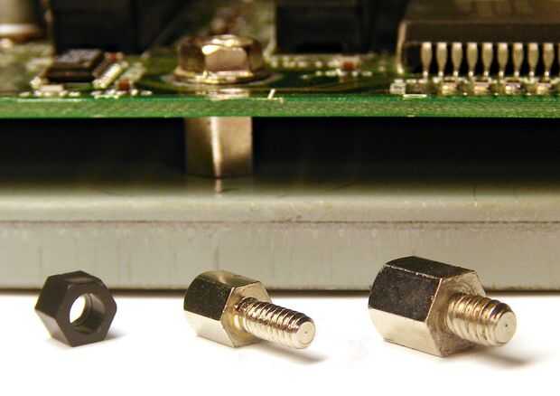 Escoger el derecho de monta y después atornillarlas a mano. Estos van a quedar por debajo de la placa madre y luego se atornille la placa base en estos. Los montes impiden que la placa base cortocircuitar. También le permite a la Motherboard, Tarjeta madre en el tornillo para que no se mueva dentro de la caja.