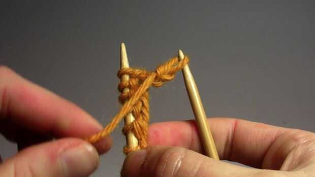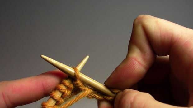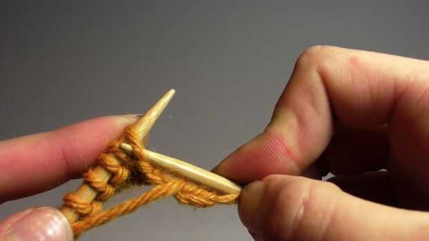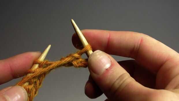 - Para la puntada de la puntilla empiezas con el hilo delante de la aguja izquierda. Pase la aguja derecha a través la parte superior de la puntada en la aguja izquierda para que la aguja derecha es frente a su aguja izquierda.