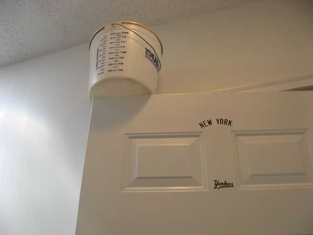 Clásica broma de los inocentes: cubo de o trampa de agua