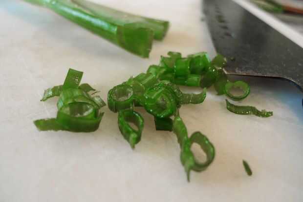 Picar encima de la cebolla verde y tirarlos en el bote.