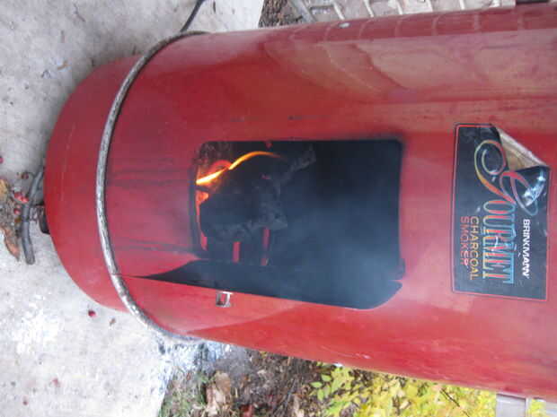 15-30 minutos en el humo debe conseguir su cecina le gusta así. Dejó hacer un pedazo de cuero manteniendo demasiado, tire de ellas hacia fuera cuando sólo un pequeño pero de restos de color de rosa.