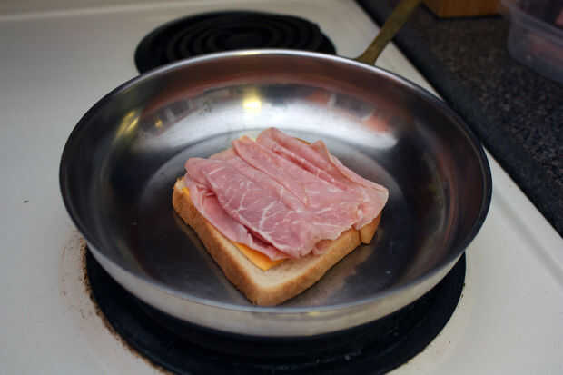 Clásico caliente de jamón y queso con un giro italiano de ajo (3 / 5 paso)