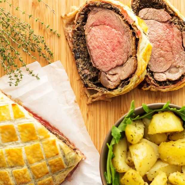 Si usted está buscando una idea de cena de lujo, no busque más! Wellington de carne es lo que necesita para impresionar a sus invitados de cena! El mejor corte de carne está cubierto con un montón de golosinas (por ejemplo, champiñones salteados y jamón) que luego es envuelto en hojaldre y al horno.