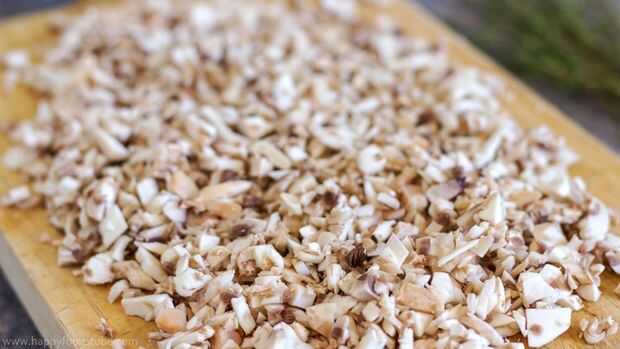 1. Lave y finamente rebanada champiñones y aceitunas.