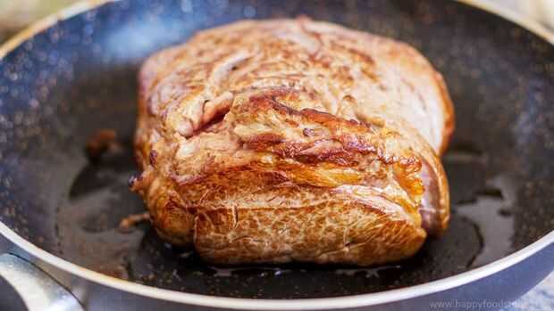2. Sazone la carne con sal y pimienta. Calentar el aceite en una sartén (Asegúrese de que el pan y el aceite están calientes) antes de colocar la carne en. Dore la carne por cada lado manteniendo el calor alto (esto tardará sólo 2-3 minutos). Una vez que la carne está dorada, transferir a un plato.