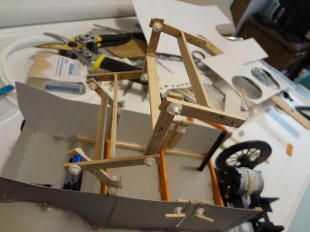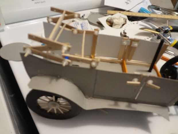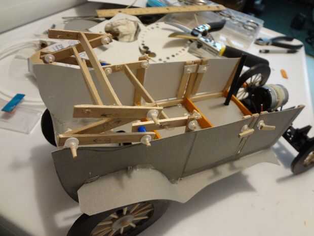 Después de conseguir puertas funcionan correctamente. Empecé a hacer el marco superior plegable. Utiliza pequeños clavos y sujetadores plásticos cortan de plástico como lo hice con el mecanismo de dirección para mantener todo en su lugar. He arreglado el marco superior a donde podría simplemente deslice hacia abajo sobre los lados del marco del parabrisas para permanecer firmemente en el lugar.
