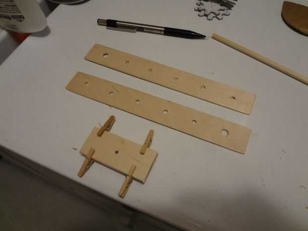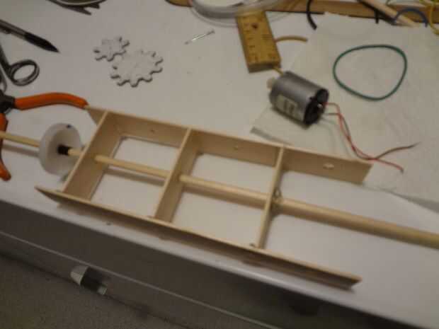 Comencé por imprimir usando una herramienta en línea muy útil llamada generador de engranajes los engranajes. Corté un engranaje más pequeño para colocar al final de la transmision y un engranaje más grande que el eje trasero se pasa a través. Yo tenía cartulina pesada y tuvo que cortar 3 de cada equipo y utiliza pegamento elmers pegamento juntos que hizo una marcha sorprendentemente fuerte. Entonces comencé a trabajar en el chasis a partir de los largueros del bastidor. Llevó a cabo utilizando clothspins minúsculo mientras que perfora agujeros para ejes de rueda. También hizo lo mismo para las piezas del carril centro marco y perforó un agujero en los que el eje pasaba a través.