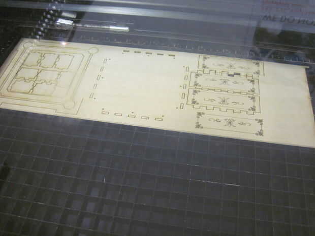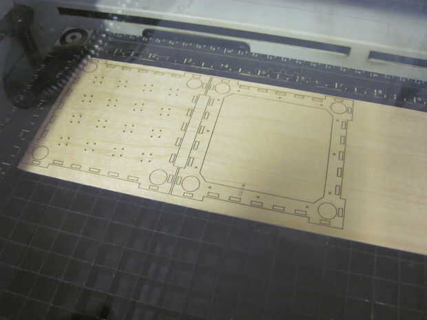 Otra vez, para la corte (y grabado) la máquina hizo el trabajo. Sólo se cortan los diferentes diseños del material correspondiente (necesita 5 piezas el material de "relleno" para el interior - uso de material más barato, nadie verá :-)