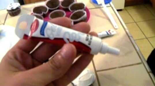 Bueno ahora este es el último paso: P utilizando el cremoso Frosting Supremo necesita cubrir la parte superior de la Magdalena con él.