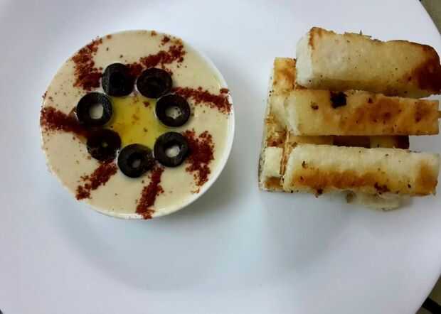 Para el pan de pita, córtela en dedos rectangulares y sacúdalo ligeramente en mantequilla y ajo hasta ligeramente doradas en color!