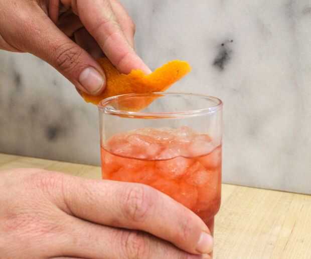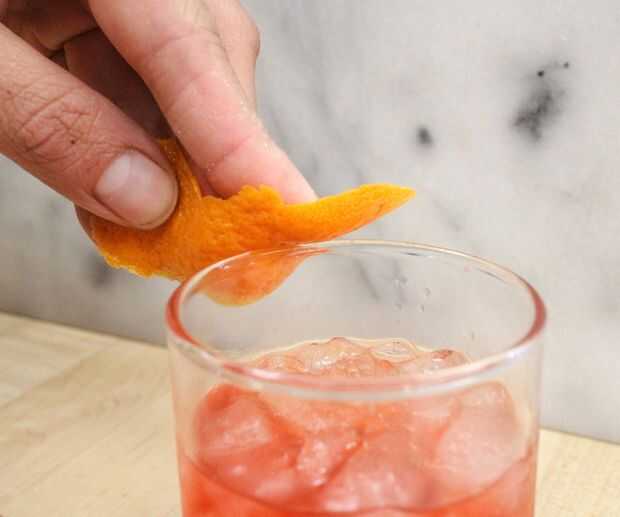 Asegúrese de limpiar el borde del vaso con la cáscara, para que el sabor del aceite de naranja se disfruta con cada sorbo.