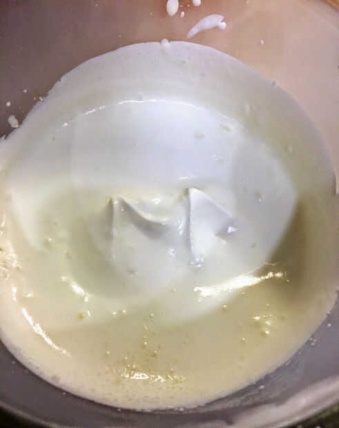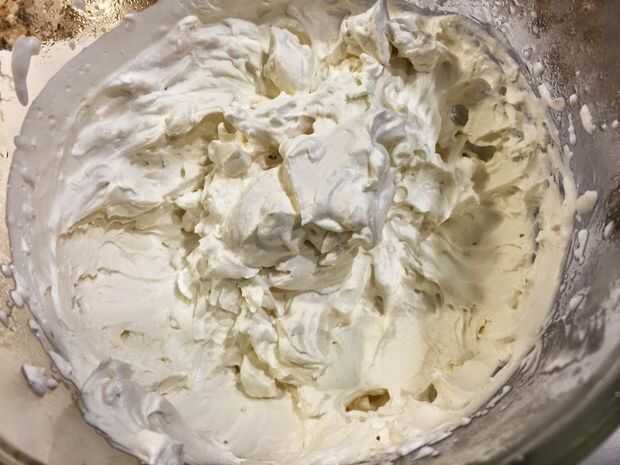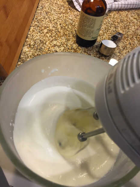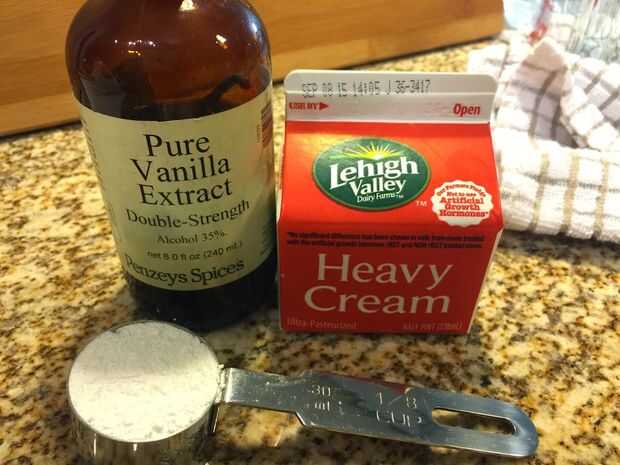 Vierta la crema en un bol bien frío. Usando una batidora eléctrica o batidor de globo, bate la crema con la consistencia deseada. Para picos suaves, la crema será sólo lo suficientemente densa como para mantener su forma en olas suaves, unos 2-4 minutos