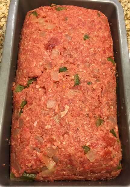 Mezcla de carne de prensa Presione ligeramente suavemente en un molde de 9 x 5 pulgadas.