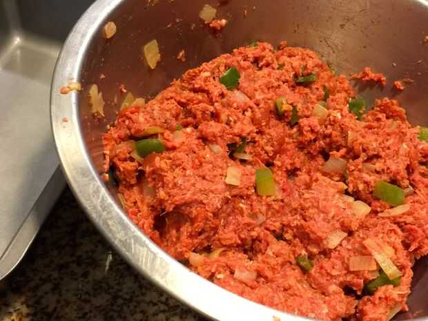 Cupcakes de pastel de carne hechos de una manera sencillaPaso 1: Mezclar los ingredientes Usé 1 y medio de libras de carne de hamburguesa1 gran Jalepeno1 pimiento amarillo3 huevosEspecias (eneldo, comino, Chile en polvo, ajo en polvo, perejil)SalPimi