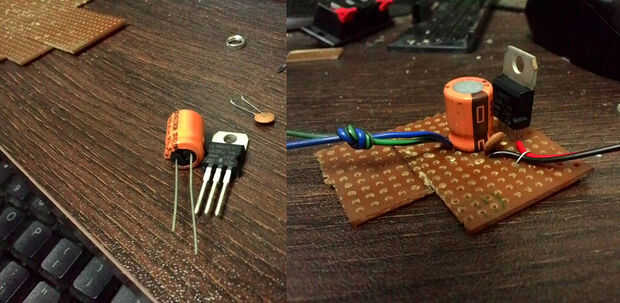Circuito de alimentación regulada de 5V para el tablero del VIRE USB MP3