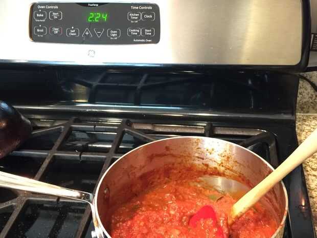 Hierva la salsa a fuego bajo hasta que espese, aproximadamente 11/2 horas. Revolviendo de vez en cuando.