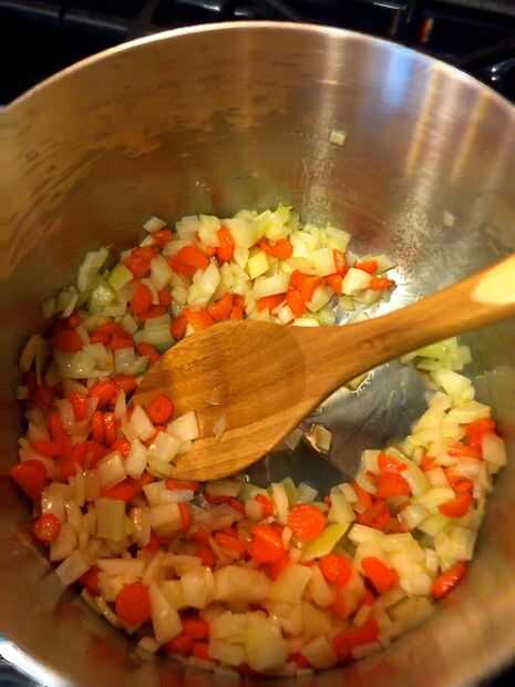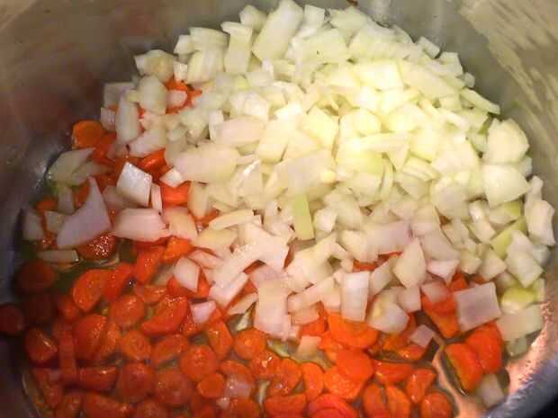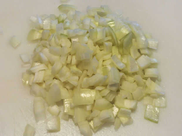 Pelar y picar 1 cebolla mediana añada a la salsa, mezcla. Cocinar 2 minutos, no dorar.
