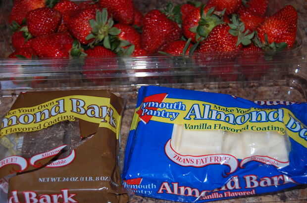Todos los ingredientes que necesitas son leche o chocolate oscuro, chocolate blanco y fresas.