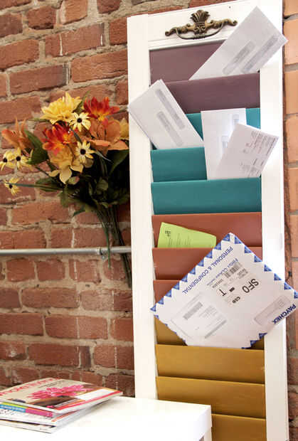 reutilizar un viejo obturador de la ventana en un clasificador de correo chic!  Su una gran manera de mantener el correo organizado y hace gran pared decoración.