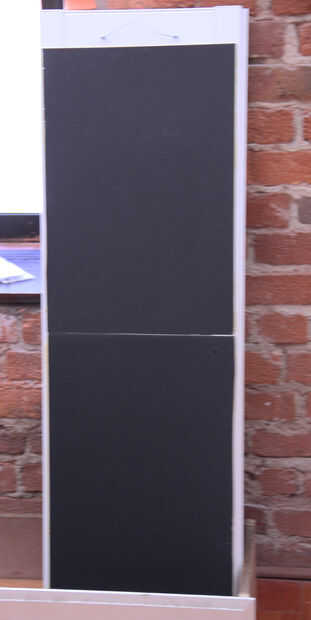Corte dos pedazos de cartón y pegado a la parte posterior de la persiana (el lado que sea contra la pared).  Asegúrese de que todos los paneles del obturador se enfrentan a la misma manera antes de pegar la cartulina abajo porque no podrás cambiar la dirección que se enfrentan una vez que el respaldo está en.