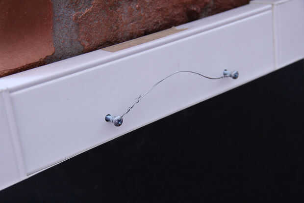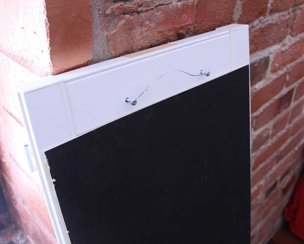Haga dos orificios en la parte posterior de la persiana y poner tornillos en los agujeros.  Conecte un cable desde un tornillo a la otra.  El obturador se cuelga como un cuadro.
